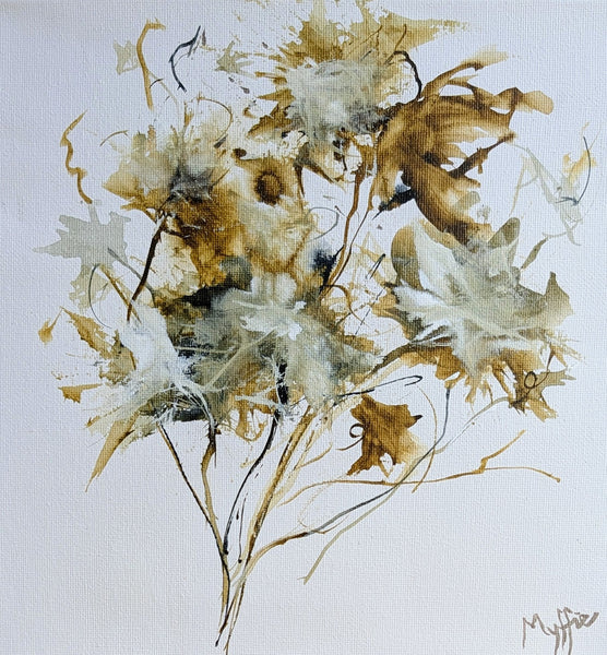 A curated selection of small-scale paintings by Myffie Coady. Intimate, detailed works inspired by Australian flora and natural textures — perfect for shelves, small walls, or grouped displays.