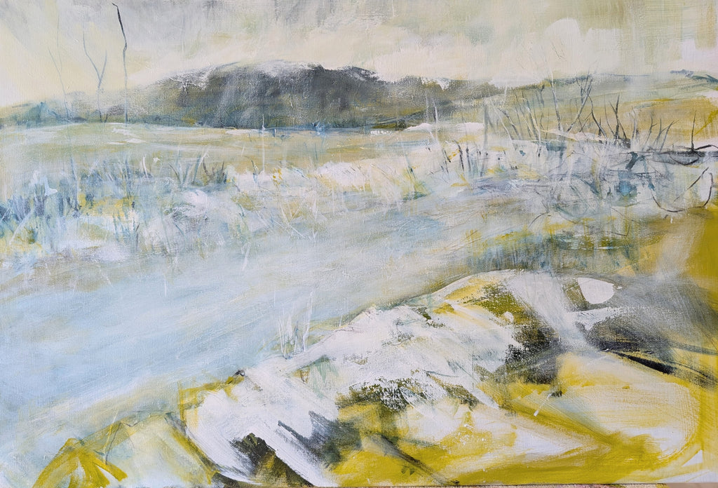 Thaw captures a quiet moment of change in the landscape, where frost recedes and water begins to move. Soft, layered tones suggest renewal and the subtle return of life.